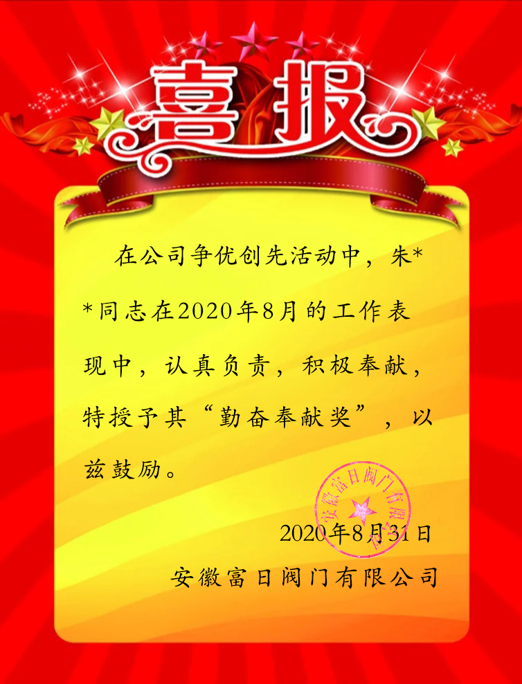下一篇:安徽富日阀门有限公司8月份表彰